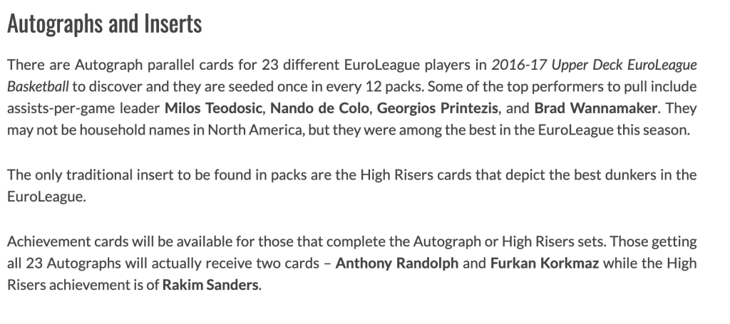 Therein lies the beauty of this product. There is ZERO sealed wax left to open. That’s because the traditional 2015-16 Upper Deck Euroleague release was such a dud, they turned the 2016-17 product into an e-pack offering.